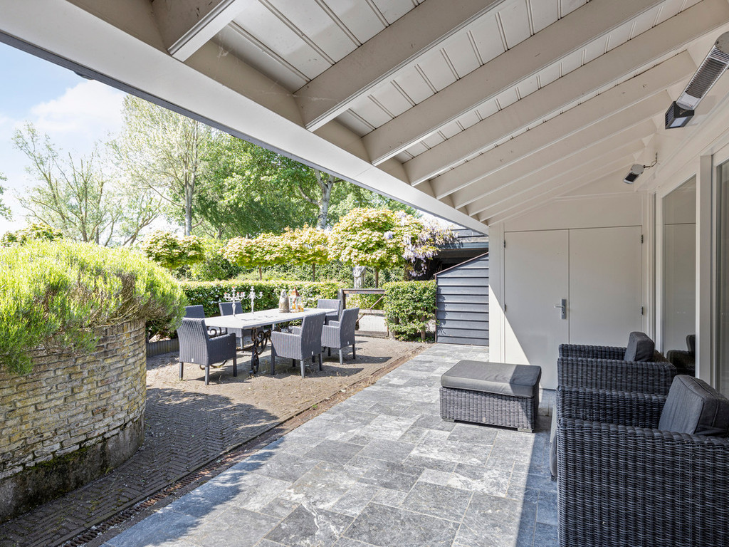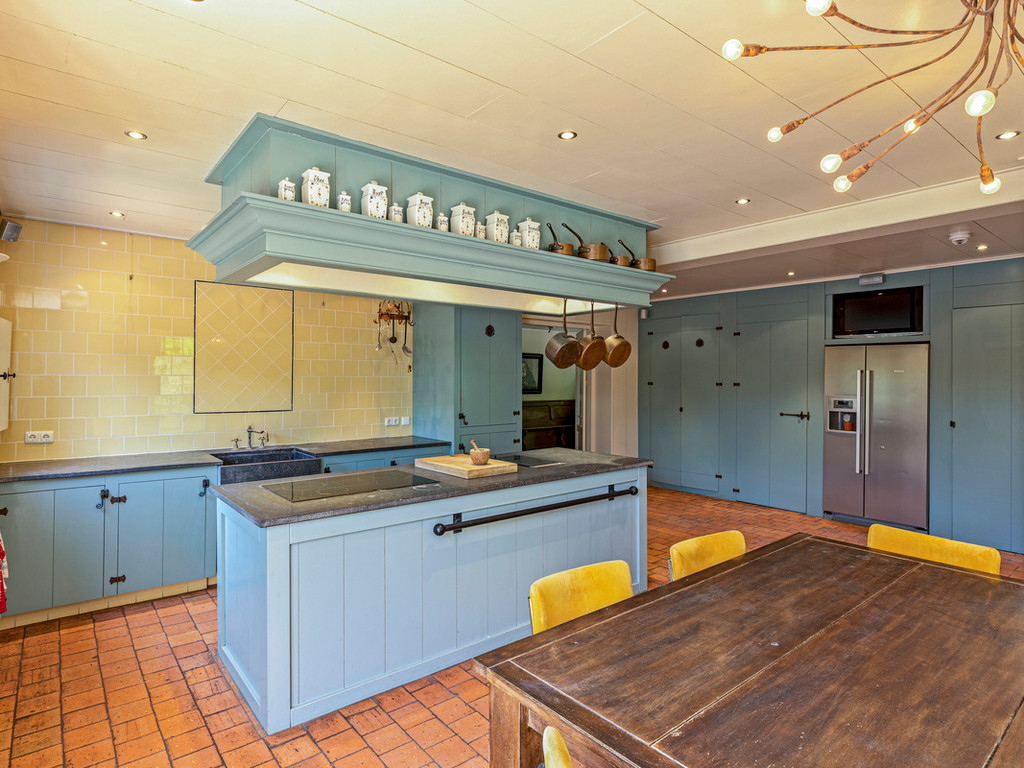 Royale woonkeuken (ca. 50 m²) met terrasdeuren naar veranda en berging met technische installaties.