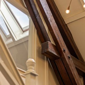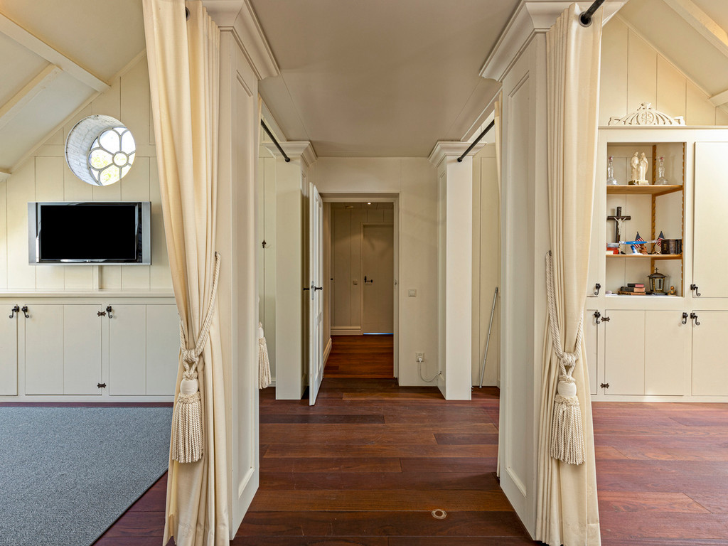Via spiltrap vanuit de keuken is de overloop bereikbaar met 4e toilet, 2e badkamer welke is voorzien van een dubbele wasbak, toilet, ligbad met handdouche en twee kantelramen; 1e slaapkamer (ca. 15 m²) voorzien van kopgevelraam en dakkapel; 2e slaapkamer (ca. 15 m²) voorzien van kopgevelraam en dakkapel; via bordestrap vanuit de woonkamer is de ruime overloop/galerij naar de twee werk-/kantoorruimten en de overige slaapkamers bereikbaar; 3e slaapkamer (ca. 16 m²) voorzien van twee kantelramen; 4e slaapkamer (ca. 24 m²) voorzien van twee kantelramen.