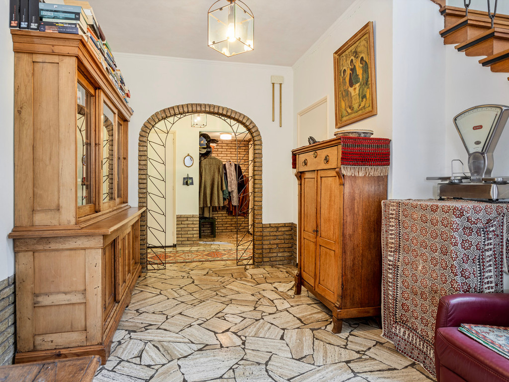 2e verdieping: overloop van waaruit toegang naar 2 bergzolders, waarvan 1 met badkamer; slaapkamer V met bergruimte, kopgevel- en kantelraam; slaapkamer VI met kantelraam; slaapkamer VII met 2 inbouwkasten, 2 gevelramen en luik naar bergzolder; 2e badkamer met 3e wc, badmeubel en douchecabine.