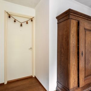 1e verdieping: overloop met massief Eikenhout vloer; toilet; slaapkamer I met badmeubel; slaapkamer II met badmeubel; slaapkamer III met badmeubel; slaapkamer IV met 4 inbouwkasten en dubbel openslaande deuren naar dakterras; royale badkamer met dakkapel, fraaie inrichting (o.a. bubbelbad, douche, 2e wc, bidet, dubbele wastafel, vloerverwarming) en toegang naar slaapkamer IV.